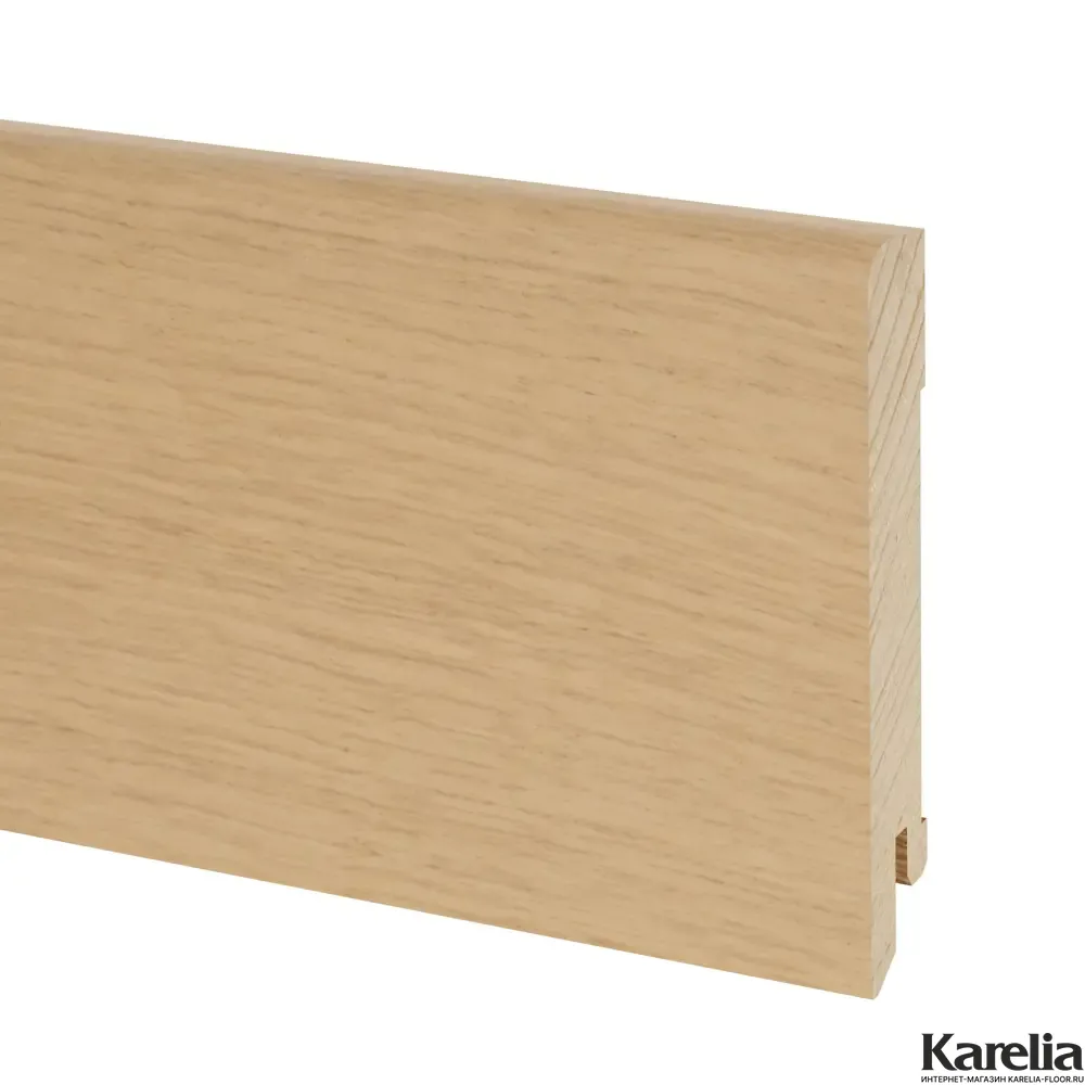 Плинтус Дуб Белёный шпон 95х15х2500, изготовленный из натурального шпона дуба, станет идеальным решением для вашего интерьера. Особенностью данного товара является его 100% натуральность. Основа плинтуса изготовлена из натуральной ели, а финишное покрытие - лак на водной основе. Это гарантирует безопасность и экологичность материала, что особенно важно для жилых помещений.